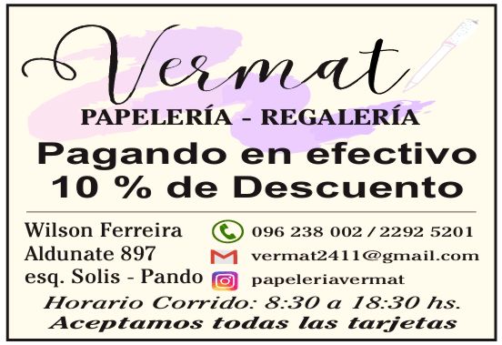 PAPELERÍA - REGALERÍA VERMAT junio 18, 2025 Anterior Siguiente Categorías de Sitio: KIOSCOS – PAPELERÍAS PerfilFotosMapaPagando en efectivo 10 % de descuento Cargando… No se encontraron registros Lo sentimos, no se encontraron registros. Ajusta tus criterios de búsqueda y vuelve a intentarlo. no se ha podido cargar el mapa Lo sentimos, no se ha podido cargar la API de Mapas. Introduce tu ubicaciónCómo llegar Modo de viajeConduciendoCaminandoEn bicicletaTransporte público Unidad de medida de distanciaMilesKilómetros Anterior Siguiente