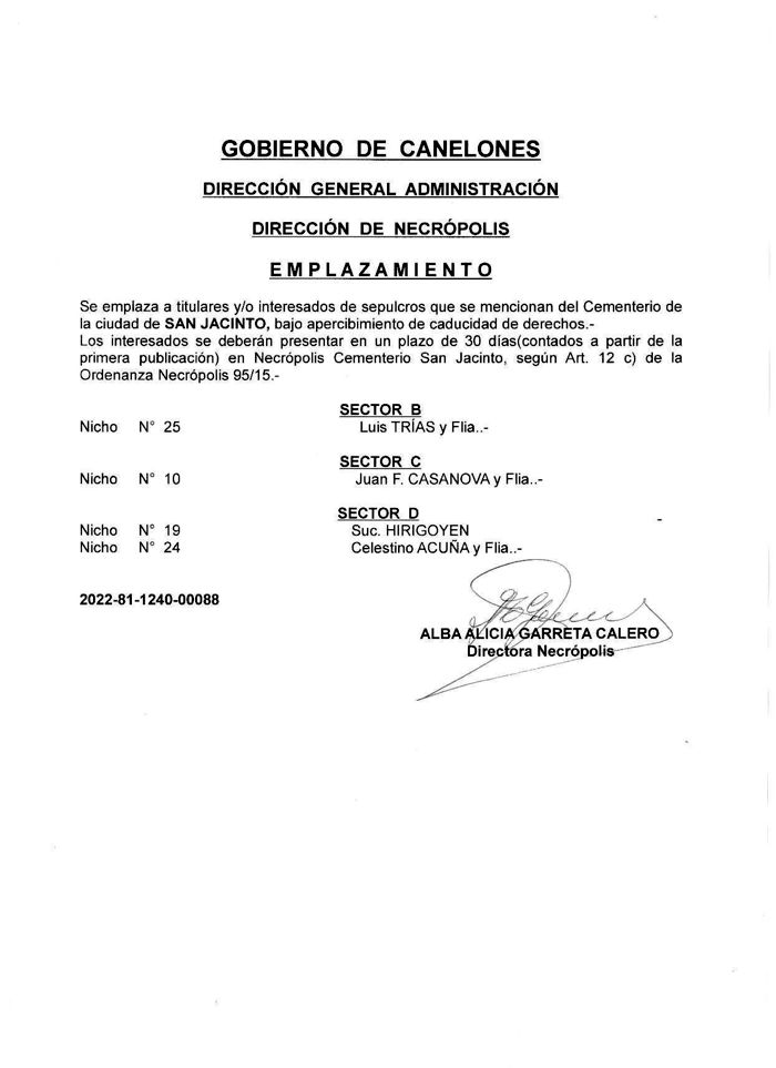 75/2020, y según providencia Nº 2933 de fecha 16/11/2022, se cita, llama y emplaza por el término de 90 días a todos los que se consideren con derechos y especialmente al último titular Mario Silvera Silvera y Manuel Silvera Silvera o sus sucesores a cualquier título; a Ana Cecilia Silvera Mates y Nelson Gonzalo Silvera Maltes; a los titulares de los padrones linderos Nº 2423, Nº 2430 y Nº 2421 y sus sucesores a cualquier título sobre el padrón Nº 2422 de la 7ª Sección Judicial de Canelones, localidad catastral Barros Blancos, que según plano del agrimensor