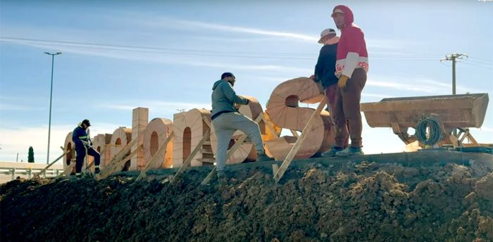 La construcción fue realizada por personas privadas de libertad alojadas en la Unidad N° 7 de Canelones. El encargado de la capacitación referida a la creación de las letras, Prof. Sebastián Ponce, explicó que, para lograr el resultado, el proyecto constó de un encofrado que soportó el hormigón y que fue realizado con chapones de 18 mm, después con varillas de ocho y de diez mm ancladas a la platea. Asimismo, subrayó que las letras pesan entre 600 y 800 kg cada una y que son realmente contundentes, de gran tamaño, de alrededor de 1,60 m cada una.La integrante del Vértice Social de la Intendencia Stefani Moreira fue quien coordinó el trabajo con el centro penitenciario y puntualizó que fueron varias las instituciones que trabajaron en el proyecto. Por eso, se han hecho una gran cantidad de actividades y coordinaciones, por ejemplo, en la llegada de los insumos necesarios para la tarea.Uno de los participantes en la construcción de las letras, Ariel, manifestó estar muy agradecido por la oportunidad que se le dio y catalogó la vivencia como muy positiva, ya que aprendió varios rubros: carpintería, herrería y construcción. A su vez, opinó que vivir esta experiencia, a nivel personal, le dejó el mensaje de que se puede salir adelante.Esta propuesta permitió que las personas privadas de libertad obtuvieran conocimientos y herramientas que les serán útiles para que puedan reinsertarse en la sociedad y volver a ser autosustentables cuando recuperen la libertad.