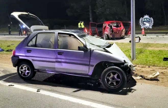 “En el automóvil que pretendió cruzar fallecen sus dos ocupantes en el lugar, resultando estos despedidos del vehículo, un hombre de 54 años y otro mayor de edad aún sin identificar”, dice el informe primario de Policía Caminera.“El vehículo que se desplazaba hacia el este lo hacía con dos ocupantes resultando ambos lesionados, a su conductor de 43 años se le diagnosticó trauma cerrado de abdómen y posible fractura costal derecha; su acompañante de 26 años presenta politrauma cervical”, agrega el informe oficial. Ambos fueron trasladados de urgencia a un centro de salud.