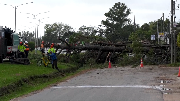 También señaló que durante la madrugada se realizaron tres evacuaciones, una coordinada directamente por el equipo en Barros Blancos y dos autoevacuaciones en Soca y La Floresta, todas ya resueltas con el retorno de las familias a sus hogares.En cuanto a los daños, González indicó que predominan los reclamos por caída de árboles, además de reportes de voladuras de techos en viviendas, galpones e invernáculos, y un caso de afectación severa en la Escuela N° 75 de Tala. También subrayó que, pese a las lluvias, no se registraron desbordes en el río Santa Lucía, lo que evitó complicaciones mayores.Por su parte, el director general de Espacios Públicos, Eugenio Castro, informó que hasta la mañana se contabilizaban centenares de reclamos vinculados al arbolado, cifra que continuaba en aumento. “Tenemos todas las cuadrillas desplegadas desde la madrugada atendiendo situaciones urgentes como calles bloqueadas o familias aisladas, la zona más compleja fue Ciudad de la Costa y Costa de Oro”, afirmó.El intendente de Canelones, Francisco Legnani, confirmó que el departamento enfrenta “una cifra importante de daños”, con árboles caídos, reclamos por tendido eléctrico, calles cortadas y varias viviendas afectadas.